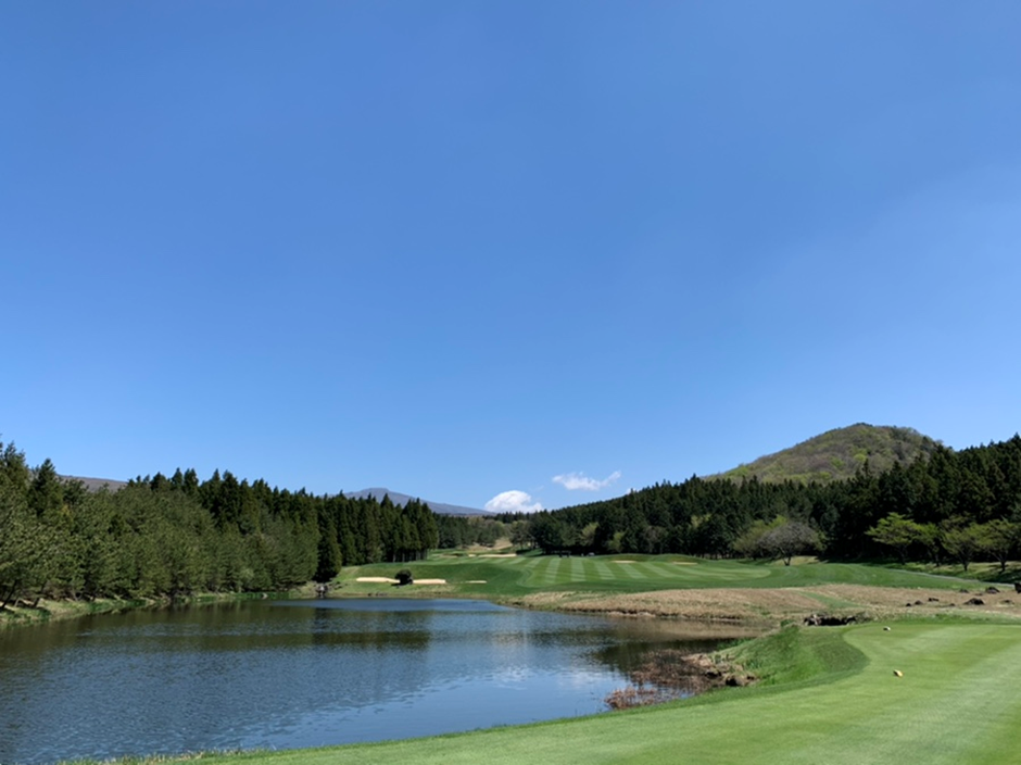 3번홀(파5). 멀리 보이는 백록담과 구름, 파란 하늘과 숲이 어우러져 장관을 이룬다.