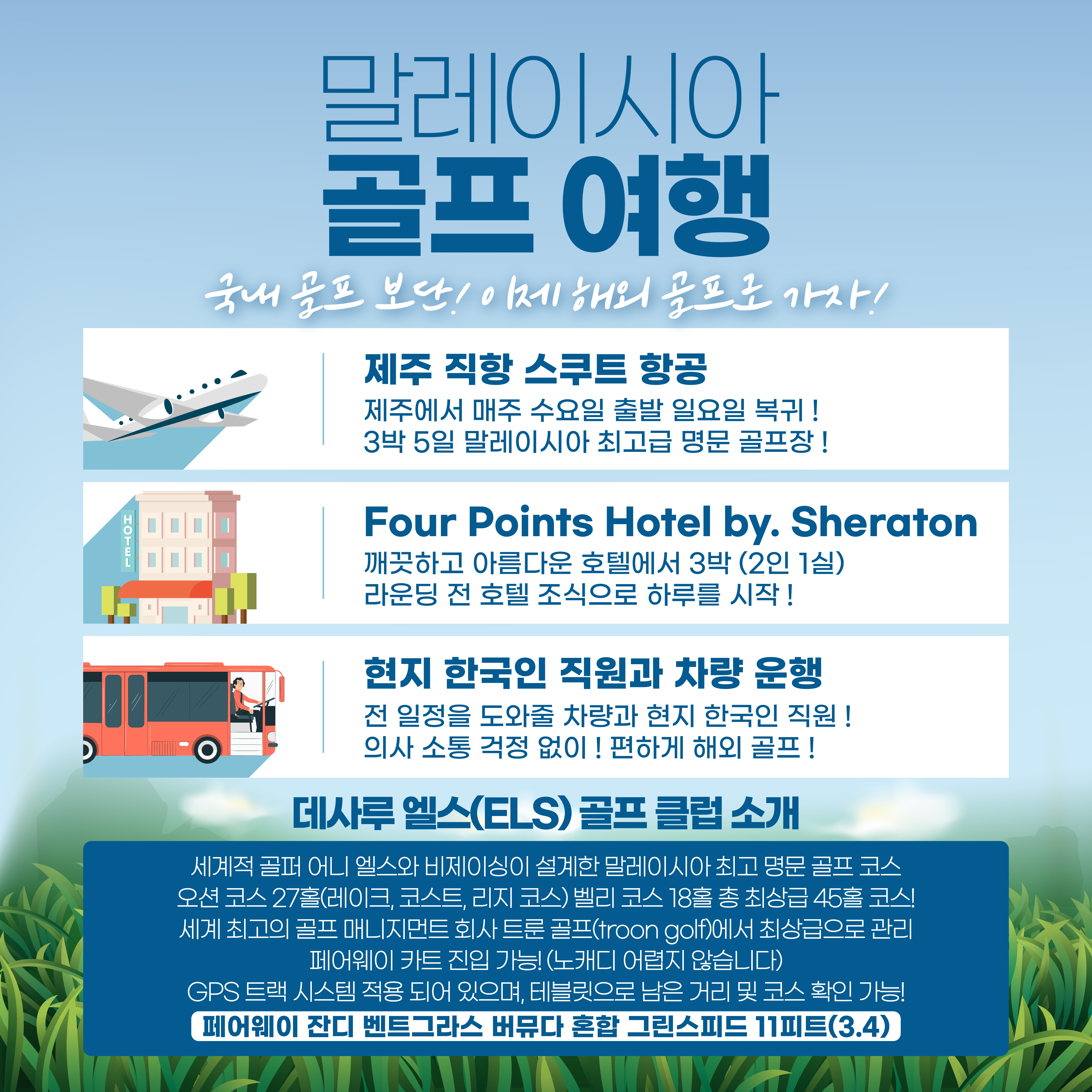 친한 제주도 여행사 대표님이 제주/말레이시아 골프를 다 년 간 판매하고 계신데, 이번에 아주 괜찮은 제주직항 골프여행 상품을 개발하셔서 소개해 드립니다.